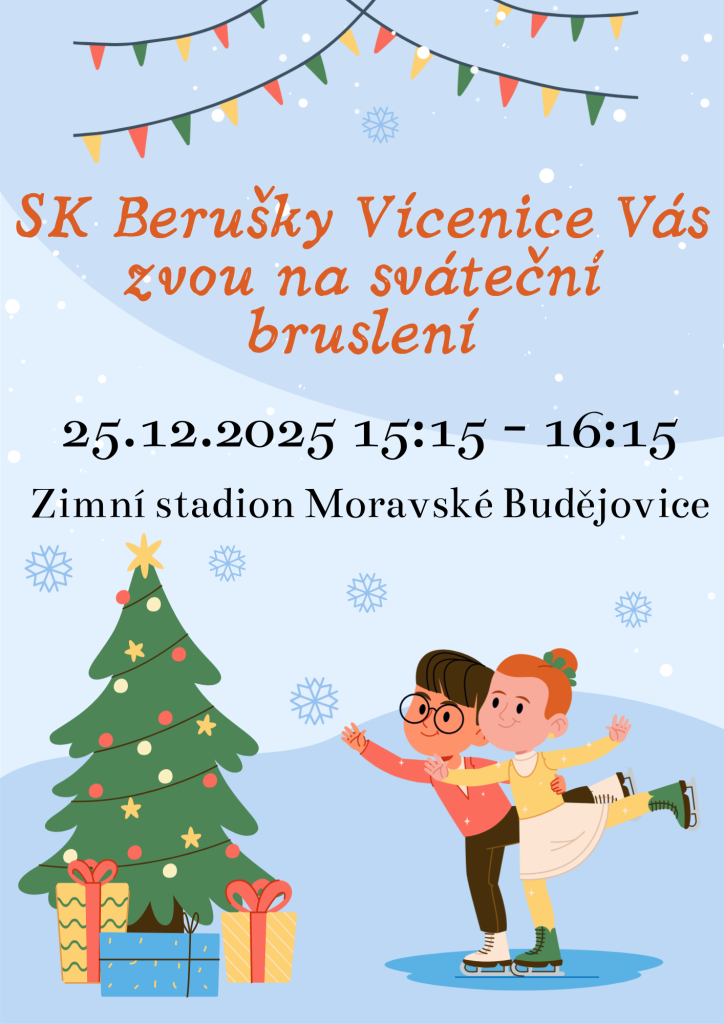 25.12.2025 Vás SK Berušky Vícenice zvou od 15:15 hod. na sváteční bruslení na Zimním stadionu v Moravských Budějovicích